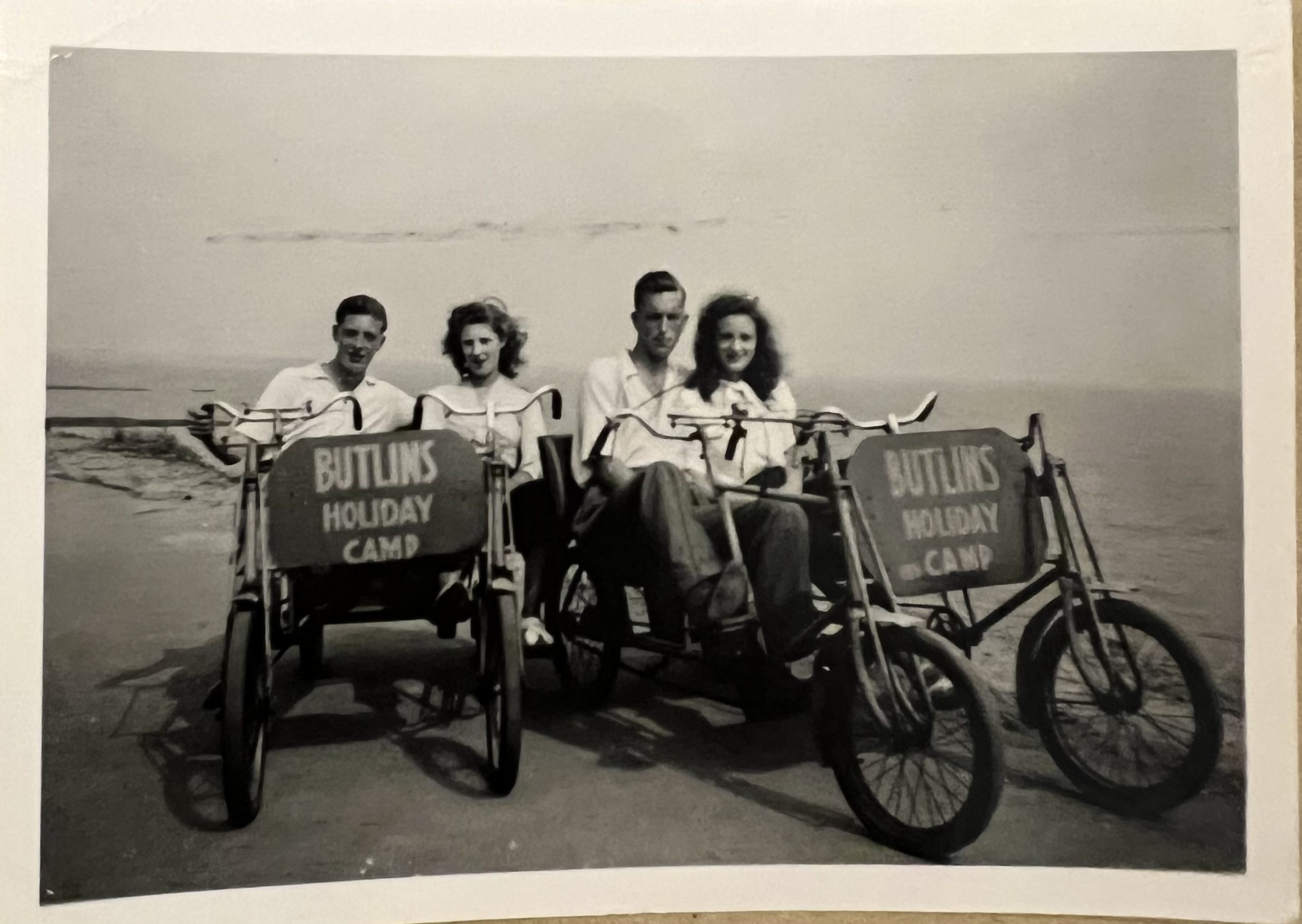 A photograph (above) of a young Eileen Brown (my Nan) sitting on a beach with a beautiful lightweight blouse, with puff sleeves, ruffles and a little frilly collar. It catches the breeze along the sea front and sets the tone for my search to find the right pattern and the perfect fabric. Sometimes I need to remind myself that the things I make are to be added to my current wardrobe, something that I will love wearing – inspired by her but created to suit me. More photos below show my Nan wearing the blouse on a trip to Butlins. The other woman in the photo on the left is my Great Auntie Mary, my Nan’s sister and best friend.