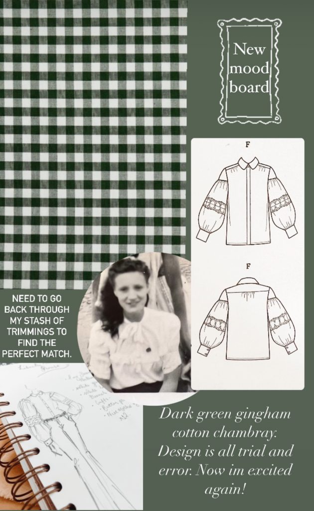 The feeling of excitement was missing. I just knew I wasn’t enjoying it. I didn’t make time or prioritise making the blouse, which isn’t normally how I feel about my hobby. I had a long hard think about why I just couldn’t be bothered to make this blouse! I went back to my inspiration, my designs and realised that if I was to finish this blouse in this fabric, I wasn’t going to wear it. I didn’t like it. The only photograph I could find of the original fabric (left) with the French seams. The pattern is beautiful, the fabric is beautiful but they didn’t belong together. I made the decision to bin it and go back to the drawing board.